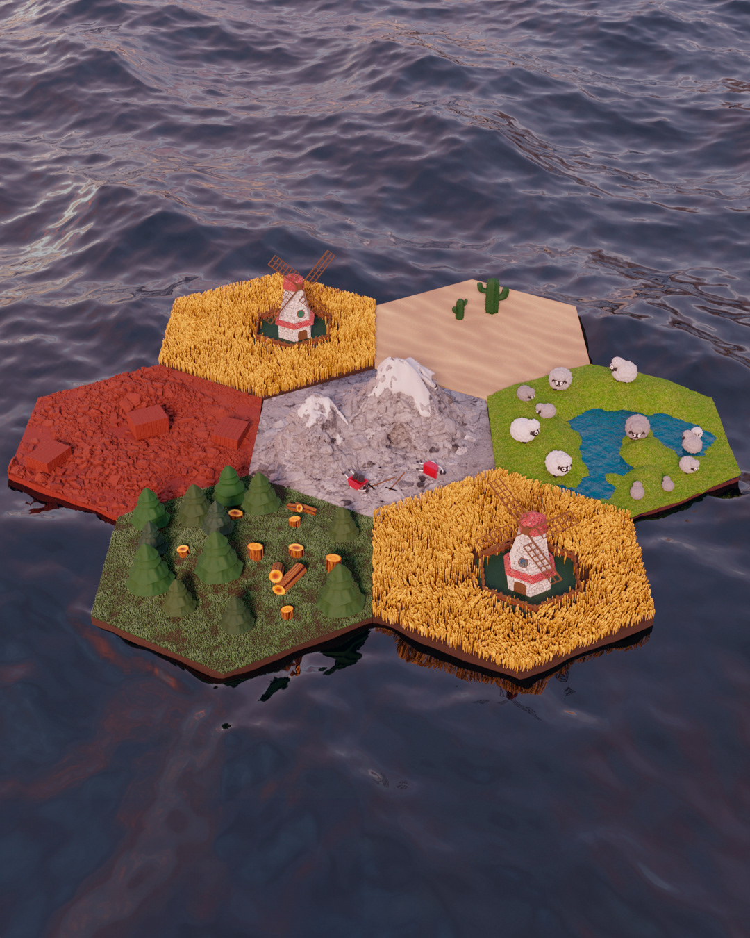 Para este proyecto quise hacer mi versión de este juego que tanto me gusta. Modelado y renderizado en Blender, texturas hechas en Photoshop e Illustrator.